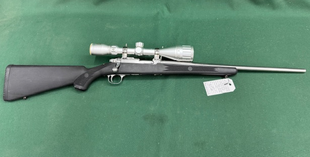 .22 MAG RUGER MODEL 77/22 STAINLESS SYNTHETIC FITTED WITH 4-12X42 NIKKO GOLD CROWN SCOPE 10RD – GREAT CONDITION !!!