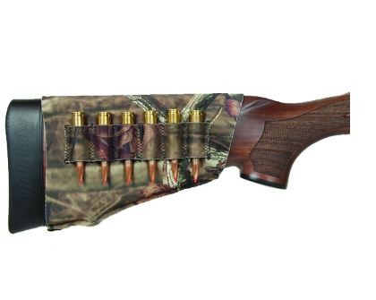 Made from Mossy Oak Break-Up Country camo 3mm stretch neoprene and stretch nylon, this shell holder adjusts to fit most guns with its hook and loop closures. Provides a slip proof grip surface that also protects the gun’s surface and includes special slits for sling swivel studs.