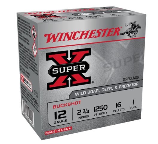 AMMO WINCHESTER 12G SUPER X VELOCITY 1250 36GRAM 16 PELLETS ( PK25 ) Calibre 12ga Shell Length 2-3/4" Muzzle Velocity 1250fps Weight 16 Pellets Bullet Type Lead Shot Size 1 Buck Rounds Per Box 25