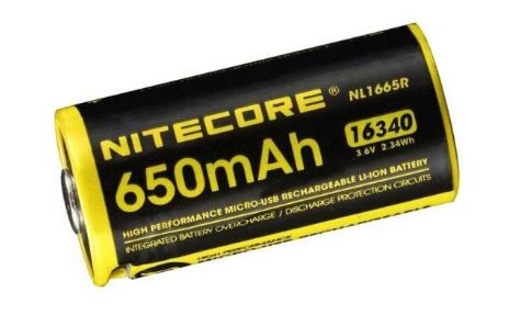 NITECORE RCR123A RECHARGABLE 650MAH LI-ION 14500- (FOR HIGH DRAIN DEVICES)