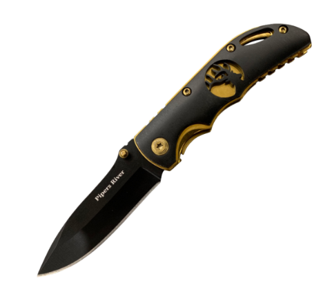 KNIFE PIPERS RIVER FOLDER BLACK & GOLD FINISH WITH ELK CUTOUT