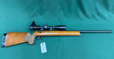 .22 Anschutz Model ”64” Target Heavy Barrel Single Shot Blued Wood 25” Barrel & 6-24x40 Barska Scope – No Bolt !!!